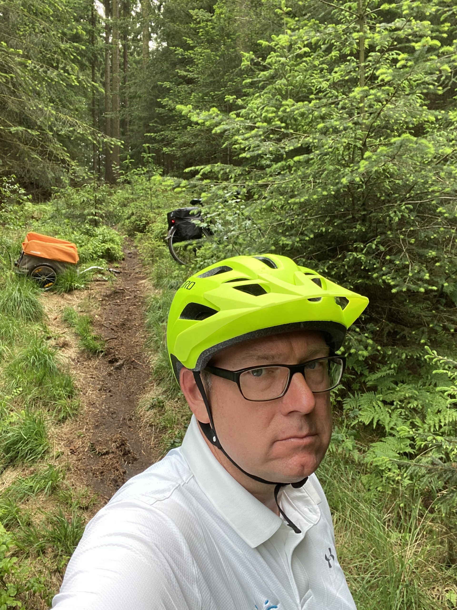 Bis in die Harburger Berge kam ich gut voran. Doch dann wurde mein Radweg zu einem Pferdewanderweg, befahrbar auch mit dem Fahrrad, so meine Info. Allerdings gab es für mich und meinen Anhänger kaum ein Durchkommen. Ich war also noch keine 40 Kilometer geradelt, da fluchte ich schon hörbar. Das konnte ja heiter werden. Schließlich kam ich an einen Anstieg, von dem ich glaube, dass auch Pferde ihre Probleme beim Aufstieg haben. Nach dem halben Anstieg gab ich erstmal auf. Ich parkte irgendwie schräg und löste den Anhänger vom Fahrrad. Dann habe ich tatsächlich alles einzeln den Hügel hinaufgebracht. Erst das Golfbag aus dem Anhänger geholt und ab nach oben. Dann zurück und dann eher wie ein müder Gaul den Anhänger hinter mir her den Anstieg hochgezogen und schließlich das Fahrrad mit dem restlichen Gepäck. Was für ein Akt. Ich war danach fix und fertig. Aber das war geschafft und der Weg wurde besser. Meine Stimmung schlagartig auch.