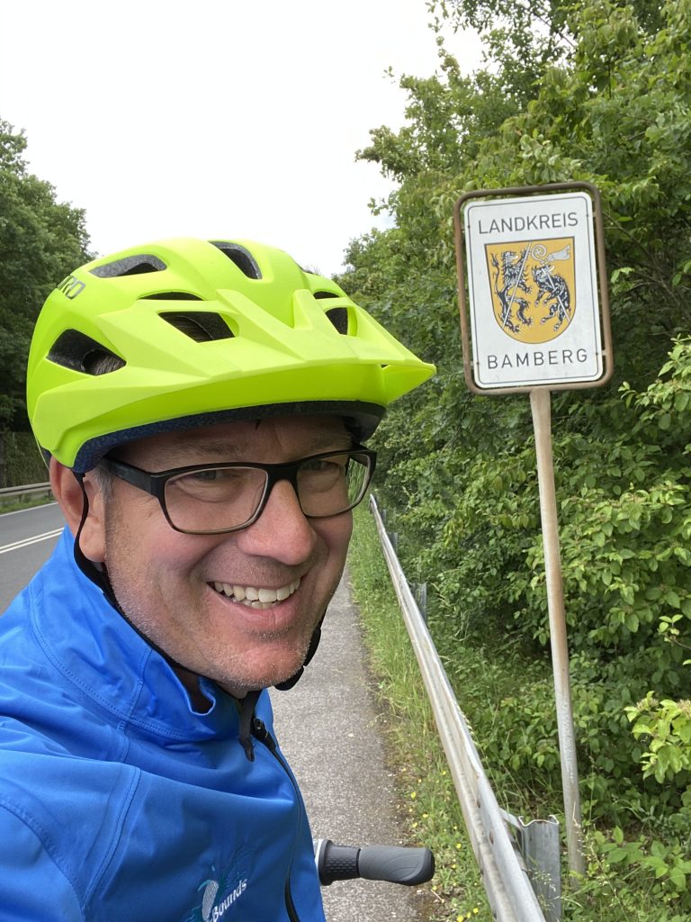 Also machte ich mich auf den Weg nach Bamberg. Als ich den Parkplatz vom Golfclub verließ, trat ich so sehr ins Pedal, wie ich es vom Radfahren gewohnt war. Prompt wurde ich nach wenigen Kilometern geblitzt. Oh Mann, so ein Mist. Das brauchte ich nun wirklich nicht. Zum Glück war ich nur ein bisschen zu schnell gewesen. Gibt ein Erinnerungsfoto.