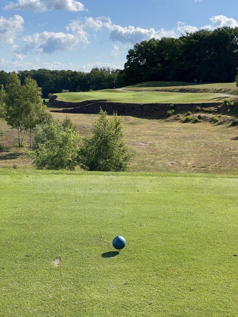 Ich bekam meine Scorecard und dann wurde mir der Weg zum Niedersachsen Course erklärt. Ich musste ein wenig laufen, um zum ersten Abschlag zu gelangen. Dafür wurde ich mit einem wunderbaren Blick über die hügelige Landschaft rund um Nörten-Hardenberg belohnt. Einfach nur toll. Dieser erste Eindruck begleitete mich im Grunde über die gesamte Zeit auf der Anlage.