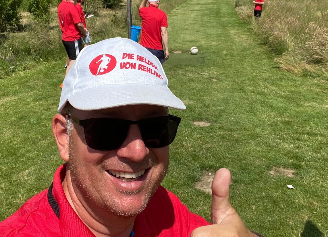 Nach all diesen Dingen haben wir uns dann schließlich um 10:20 Uhr auf den Weg nach Rehling gemacht. Ich hatte ein Ziel: Meinen Titel im Soccerpark Rehling zu verteidigen. Dort angekommen, waren auch schon alle da. Zwei aus unserer Truppe waren leider verhindert, aber wir anderen setzten die Tradition fort. Seit gut fünf Jahren spielen wir regelmäßig zwei Mal im Jahr Soccergolf. Zum Fußball-Bundesligastart und zum Saisonende. Dieser Termin hier war der eigentliche Grund für meine Fahrrad-Golf-Tour. Denn sie entstand aus der Frage, wie ich zu diesem Termin nach München reisen werde. Dieses Jahr haben wir es, wegen Corona, nicht so ganz zum Saisonende hinbekommen, aber es hat mich riesig gefreut, dass ich wieder dabei war. Christian, Thomas, Winfried, Harald und ich haben Soccergolf gespielt und Josef, der leicht verletzt war, hat sich als Schiedsrichter und Schriftführer zur Verfügung gestellt. So konnte es losgehen.