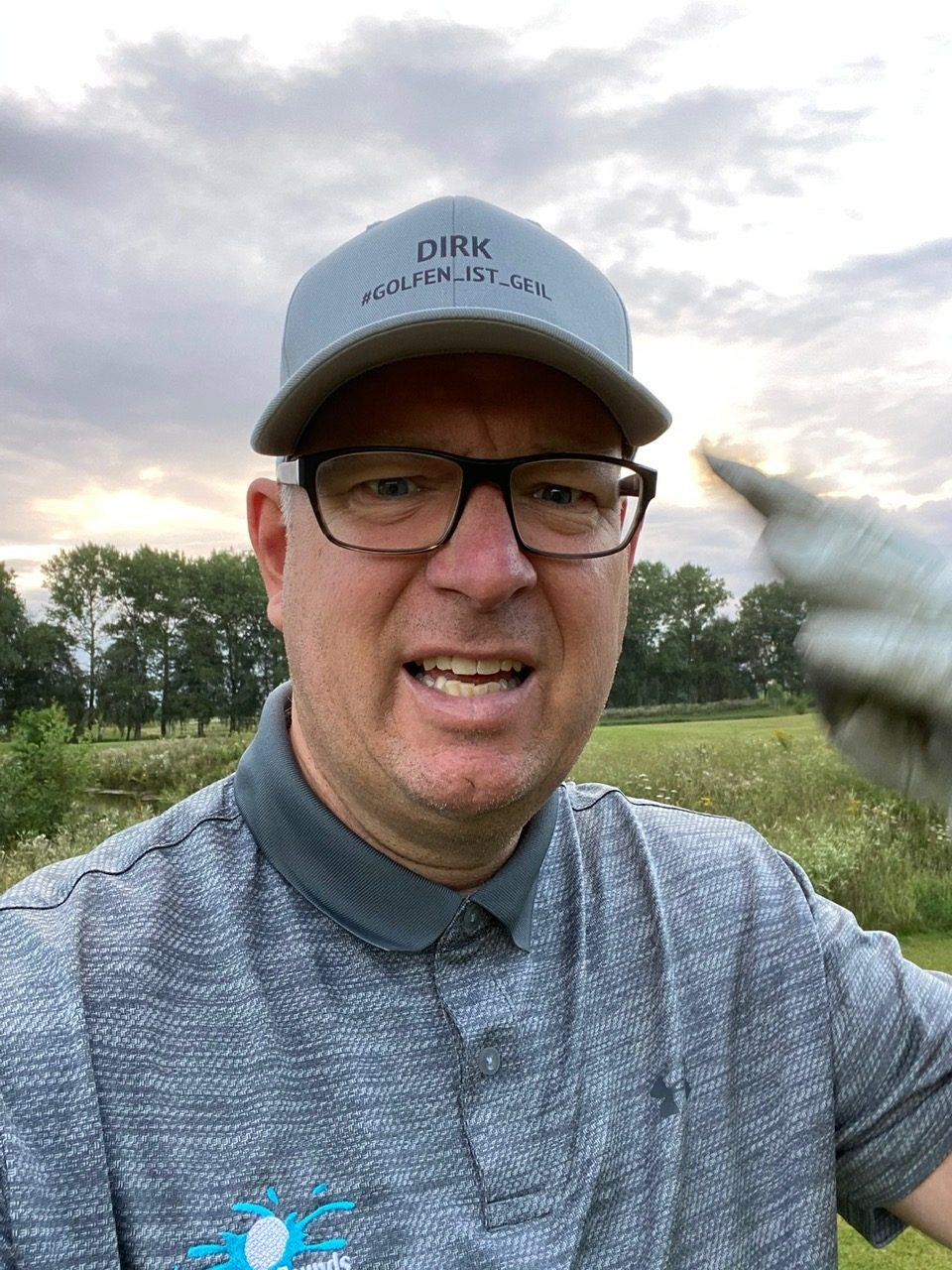 Tja, und so klingelte dann auch pünktlich um 5 Uhr der Wecker. Mein Gott, was hatte ich mir da bloß angetan? Draußen war es noch stockdunkel und ich fragte Winfried an der Kaffeemaschine, was wir denn schon um die Uhrzeit wollen? Es würde mindestens noch eine Stunde dauern, bis wir überhaupt einen Ball sehen würden. “Gemach, gemach”, so seine Antwort. Wir tranken erst einmal gemütlich unseren Kaffee und langsam dämmerte die Morgensonne langsam durch die dunklen Wolken. Nicht ganz pünktlich, aber glücklich, standen wir beide um 6:05 Uhr am ersten Abschlag in Puchheim.
