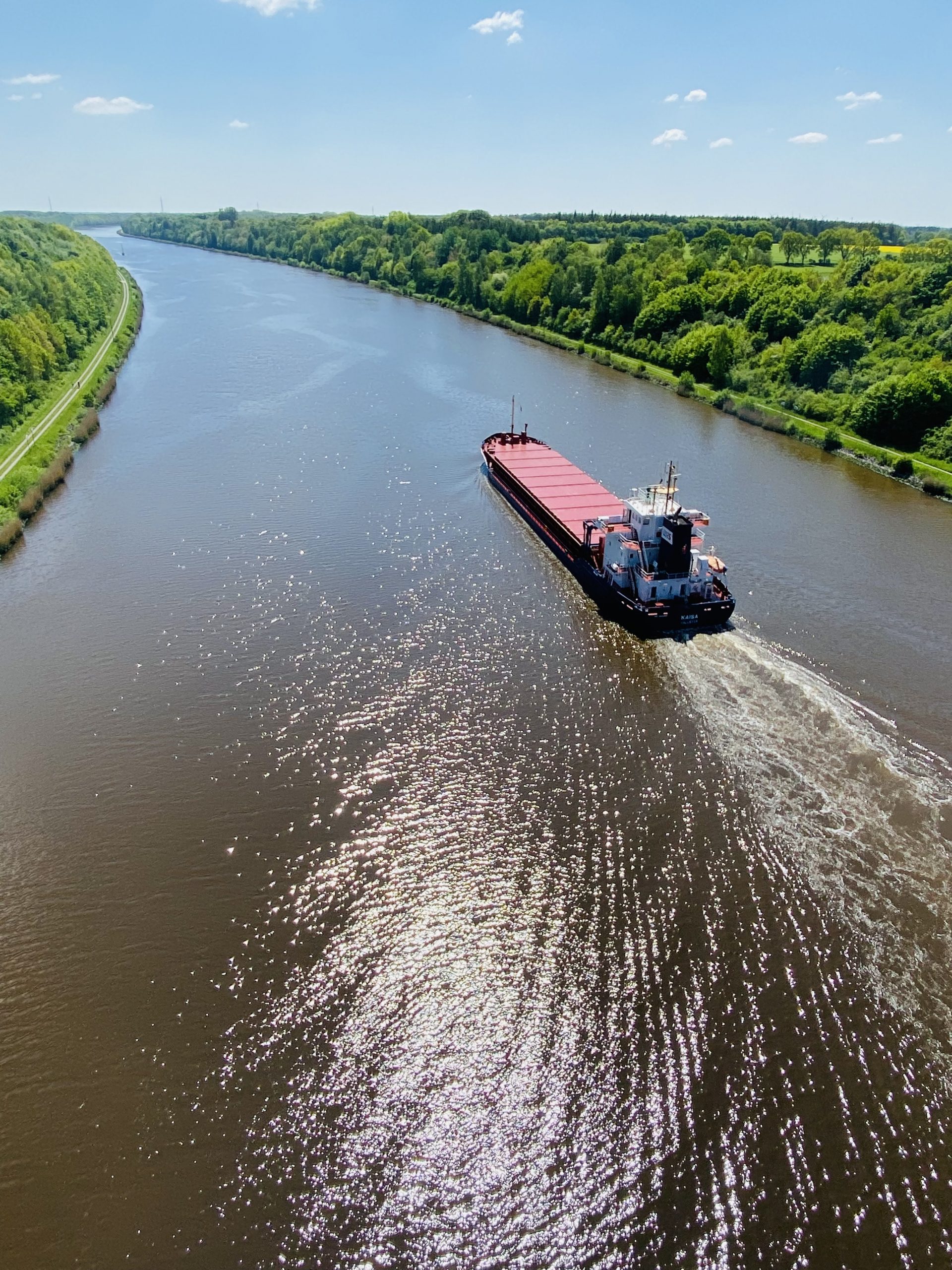 Am Nachmittag erreichten wir den Nord-Ostsee-Kanal. Bei blauem Himmel zeigte sich mir von der Hochbrücke eine wundervolle Landschaft. Ich machte ein paar Fotos, wartete noch auf ein, zwei Schiffe und nahm nach rund einer Stunde Pause wieder Fahrt für die letzten 25 Kilometer auf. Wie doch die Zeit verging. Kurz vor 17 Uhr kam ich dann in Stelle-Wittenwurth an, wo mich Friedel bereits mit einem kühlen Bier erwartete. Das war jetzt genau das Richtige. Danach nahm ich eine Dusche, sortierte meine Klamotten und genoss den restlichen Abend am Grill.
