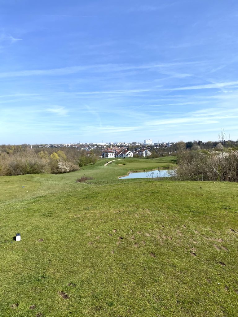 Folgendes vorweg: Ich habe versucht, krampfhaft mit Marcus einigermaßen mitzuhalten. Der größte Fehler, den ich machen konnte! Bitte, bitte spielt Euer Spiel und orientiert Euch niemals an dem Spiel des anderen! Er spielt so geiles Golf, an dem ich mich erfreute. Leider schaffte ich es nicht so richtig, mich locker zu machen. Es fing einigermaßen ok an, wurde aber leider schlechter und bis zum Ende auch nicht besser. Dafür erfreute ich mich an der abwechslungsreichen und schön angelegten Golfanlage, die wirklich richtig schön angelegt ist. Die Anlage ist ziemlich hügelig, so dass man immer wieder tolle Aussichten auf Schwieberdingen, Hemmingen oder Korntal genießen konnte. Ein Traum, denn wir hatten richtig Glück mit dem Wetter.